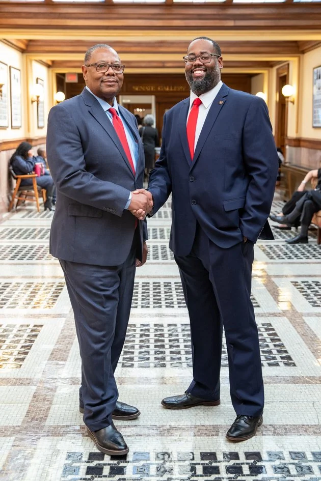 Passing the torch. Senator Reginald Jackson with his father, former Senator Robert L. Jackson, on the historic day he was sworn into the very same office his father held for 20 years.